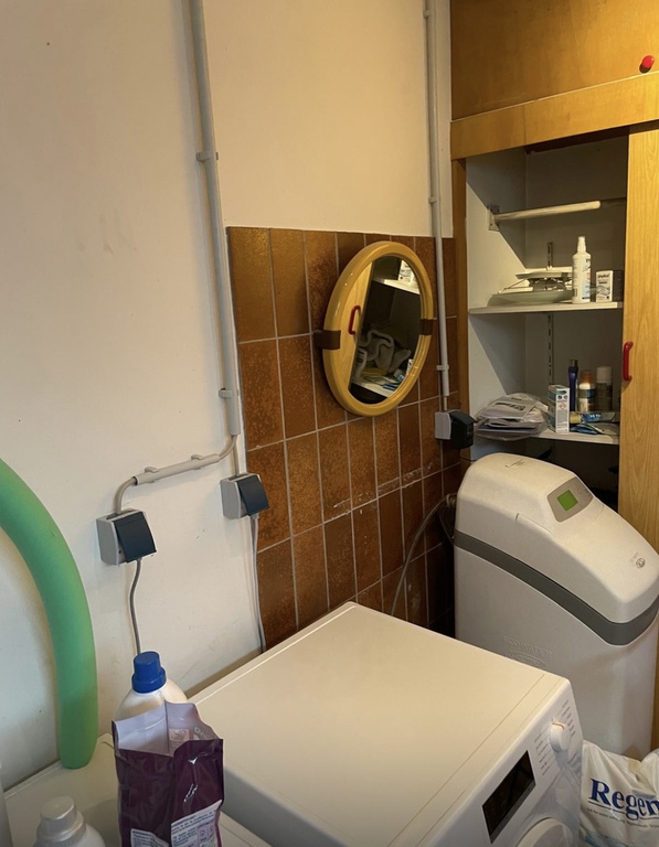 Aus einer in die Jahre gekommenen Waschküche mit Waschmaschine und Trockner am Boden entstand ein moderner, funktionaler Raum.